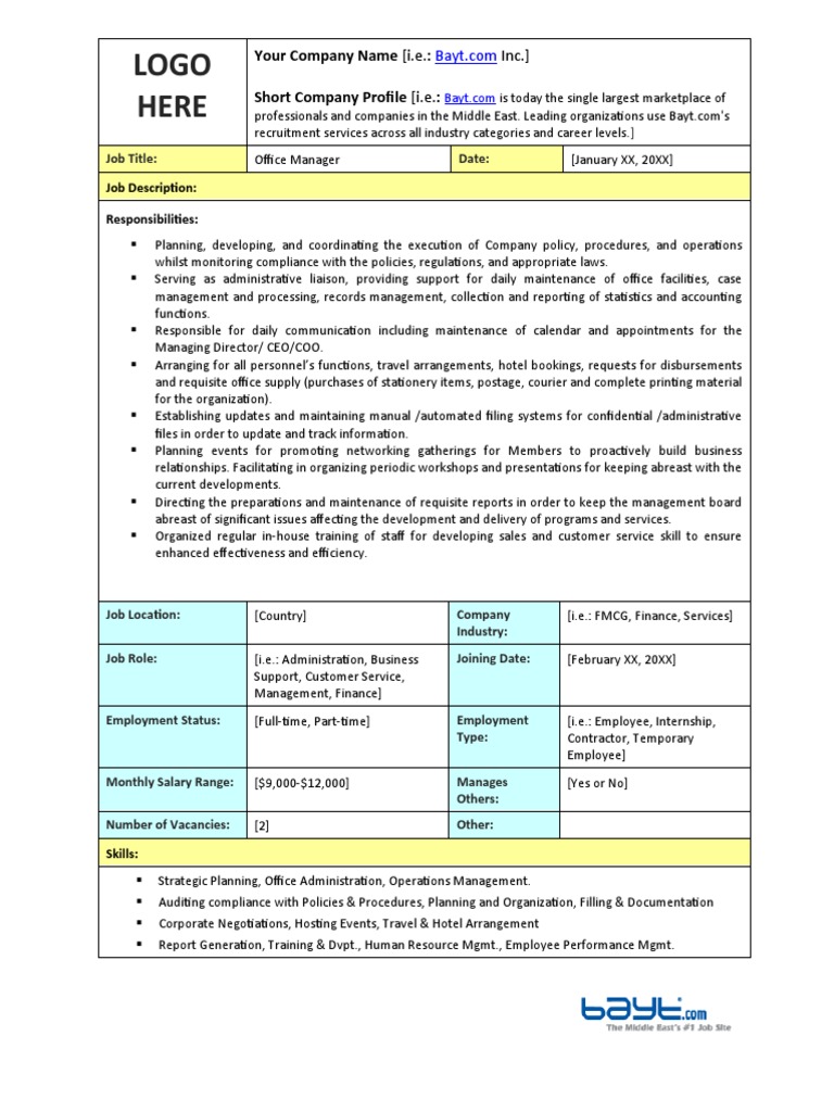 Your job description is the first touchpoint between your company and your new hire. Business administration in this role, you are responsible for leading, controlling and organising a firm's activities. Other duties include recruiting staff, managing income, approving office. View all our office administrator vacancies now with new jobs added daily! Office administrator job description (jd).